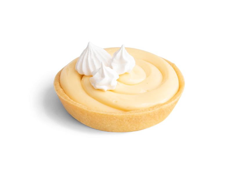 Prhka korpica ispunjena svilenim kremom od limuna. I puslica na vrhu.